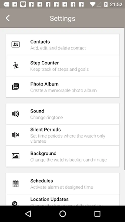 In addition, the app allows to set a safety zone for the watch to send the app notifications if the watch enter or leave the safety zones.