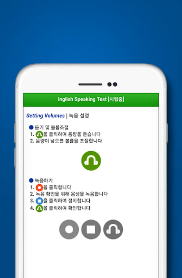 - After setting the volume (listening and recording), take the test with the same 11 questions as the actual exam.