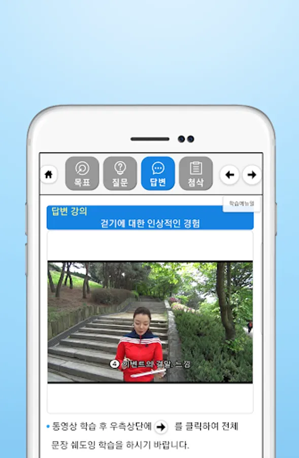 -20 lessons will be conducted in order of 'Lecture → Shadowing → Answer Practice by Question Sentence'.