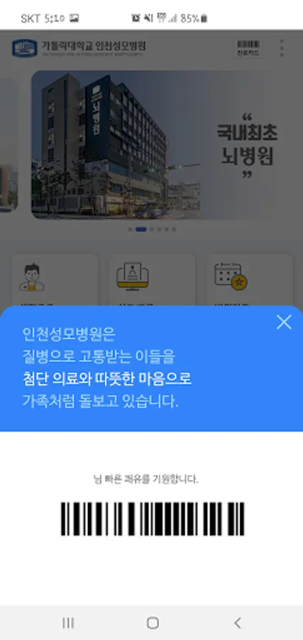 It is a mobile application for Catholic University Incheon St. Mary's Hospital.