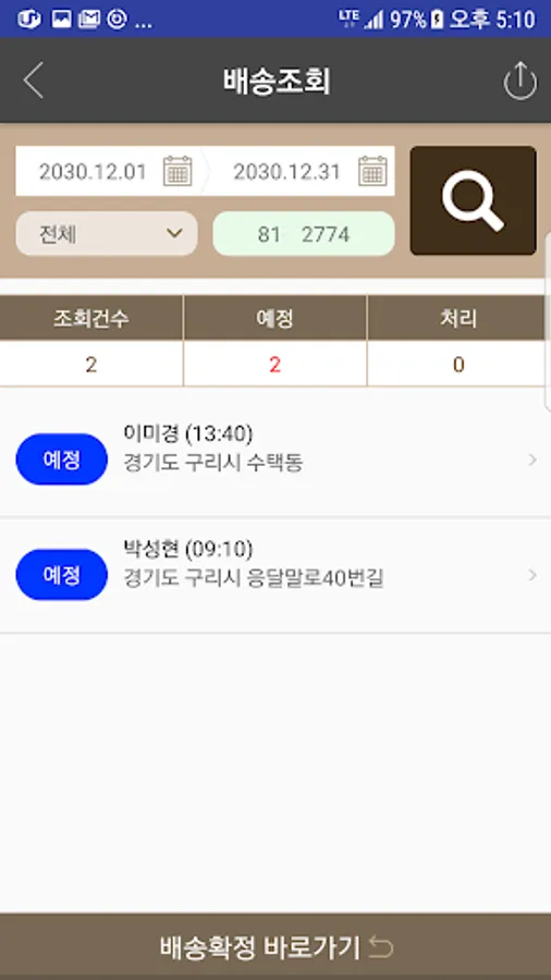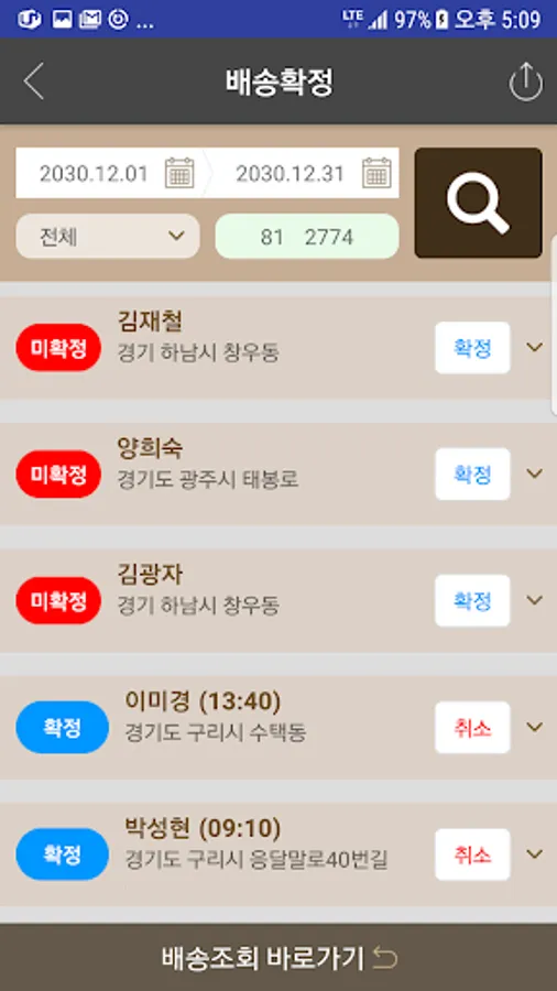 - On-site treatment of immediate delivery confirmation / delivery cancellation