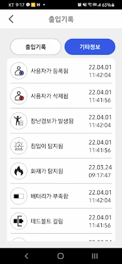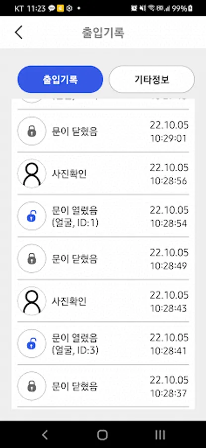 As the main function, you can check the history of entrants and check various event information (door open, closed, fire, ...), and you can directly control the door lock (open and close the door) with the APP.
