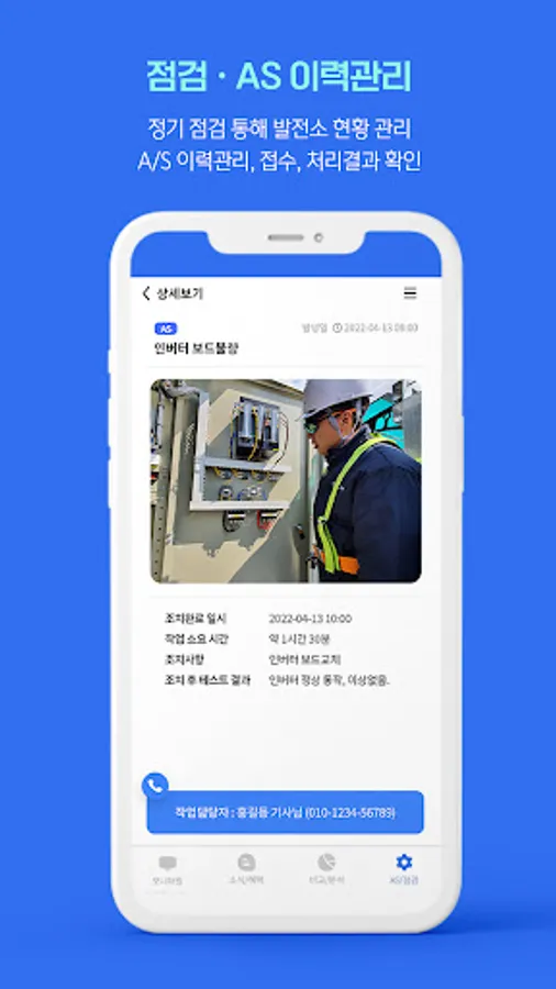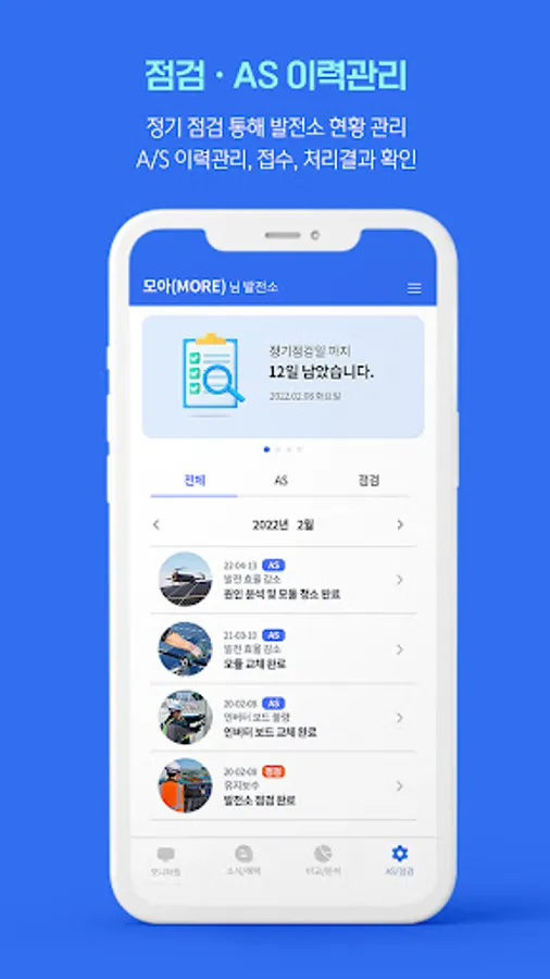 - You can manage A/S and regular inspection history in the mobile app, and you can manage the power plant periodically through notification service.