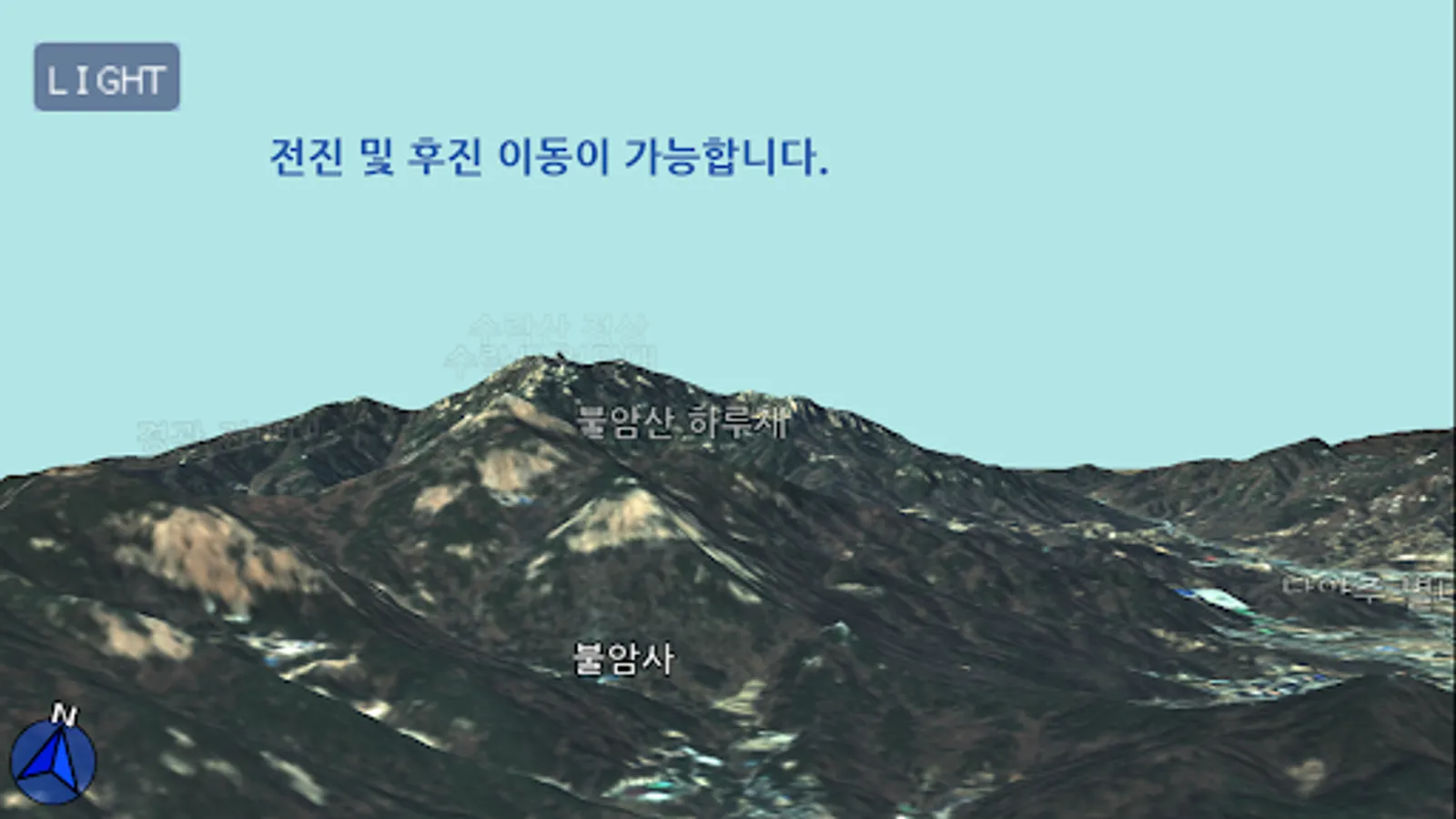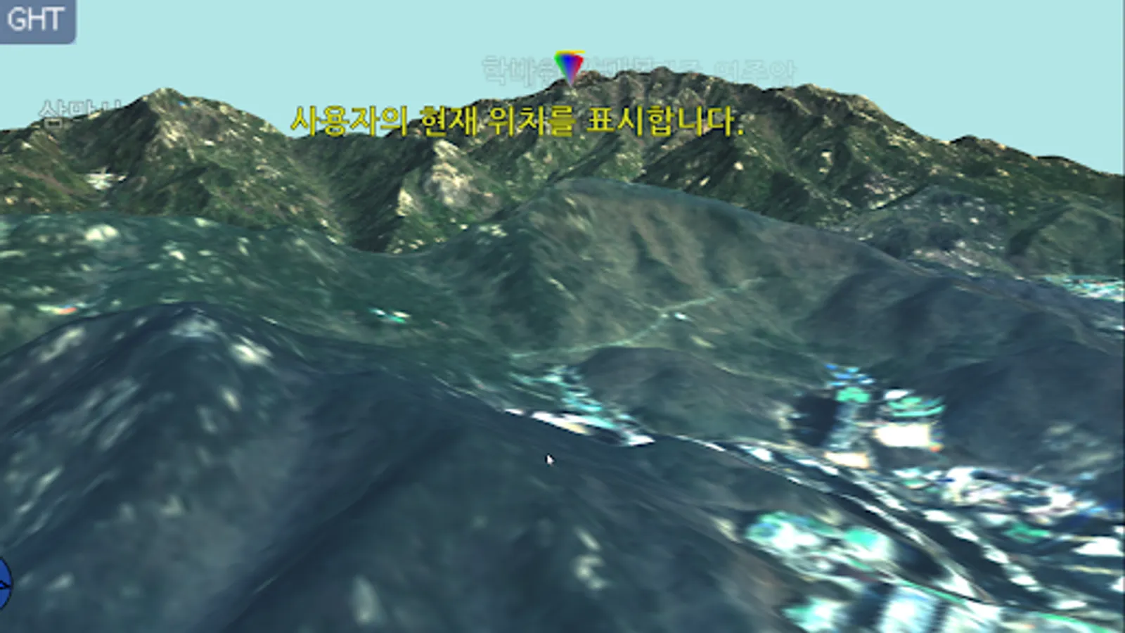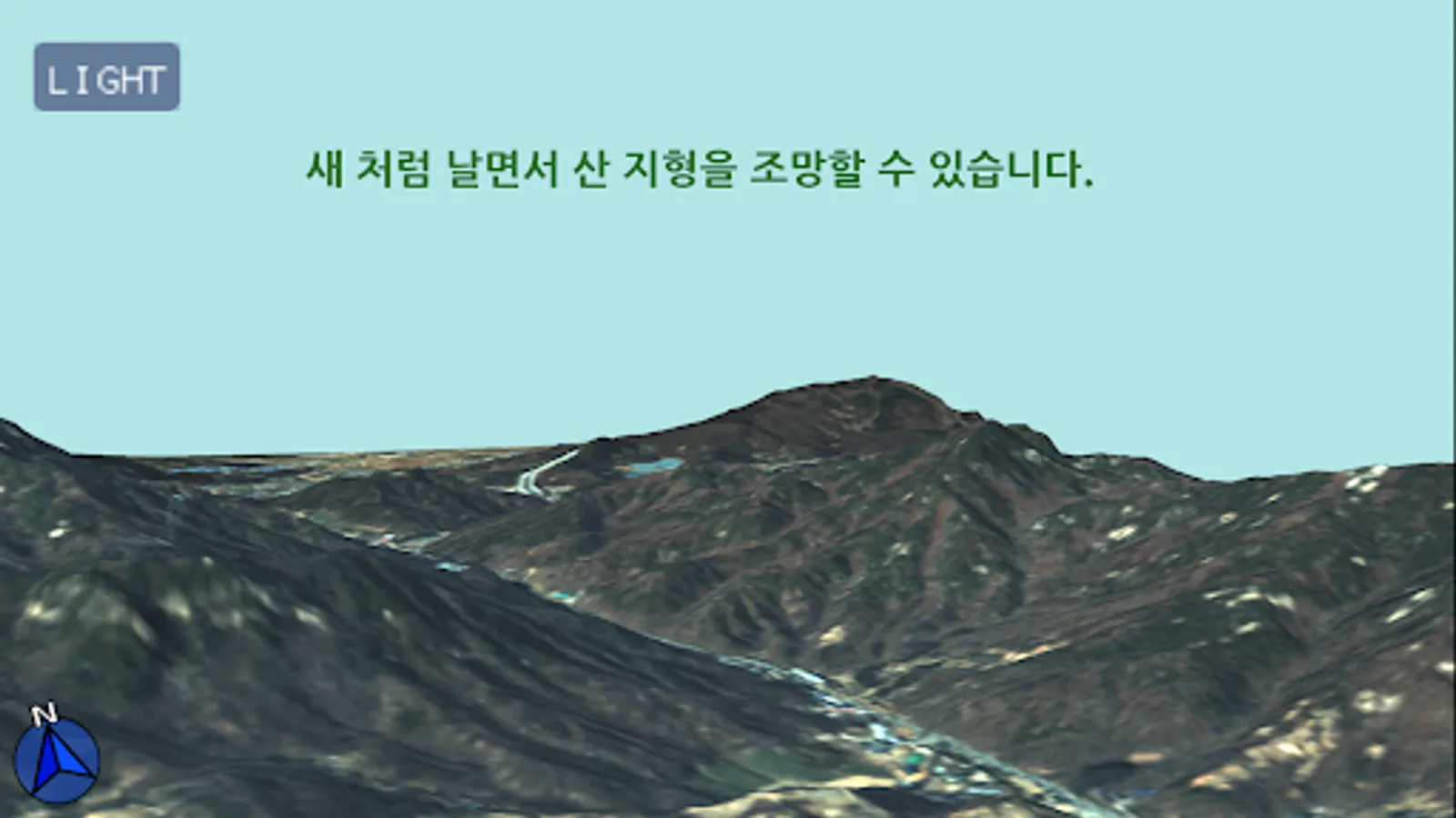 You fly like a bird over the mountain terrain and view it in 3D.