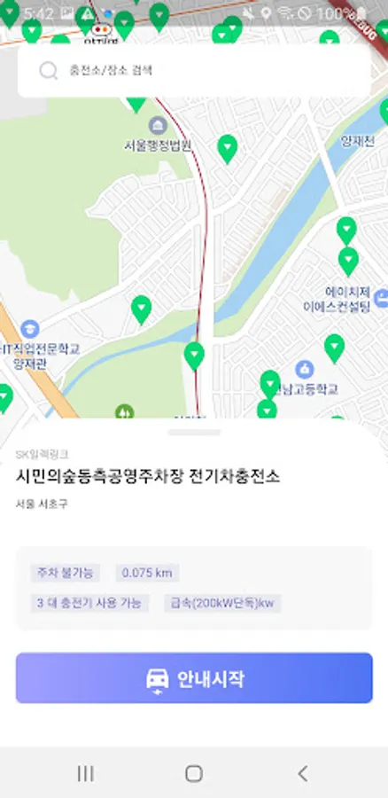It guides you to the location of an electric vehicle charging station near you and the route to the charging station.