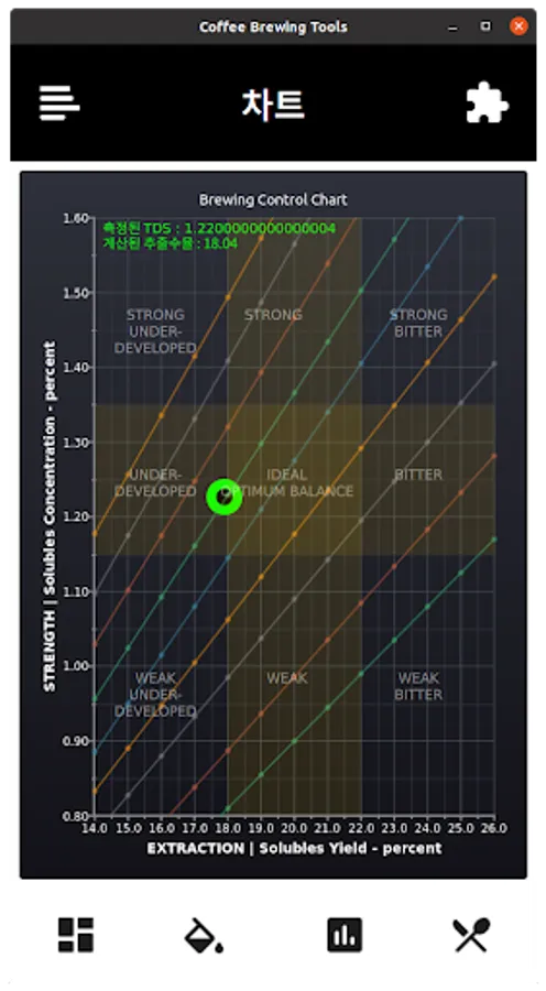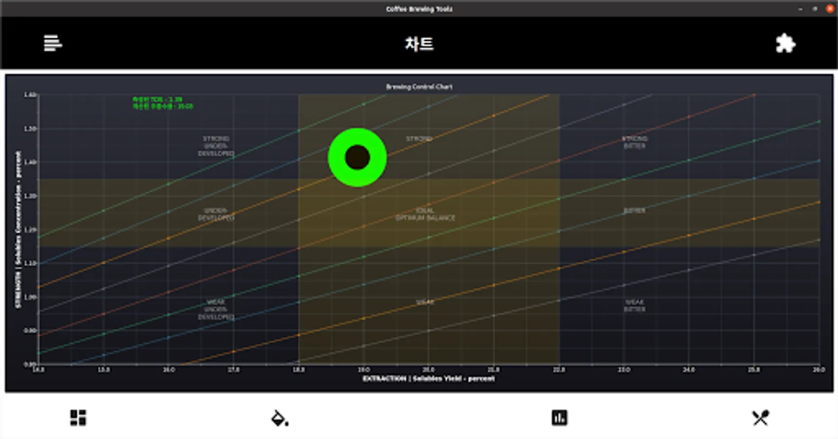 6. Pressing the readjust button lists the conditions under which the desired TDS and brew rate can be achieved by adjusting the designed value.