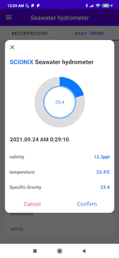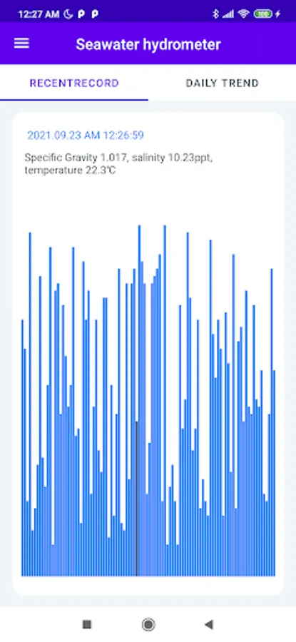 - check the trend of gravity, temperature, and salinity by date using the app.