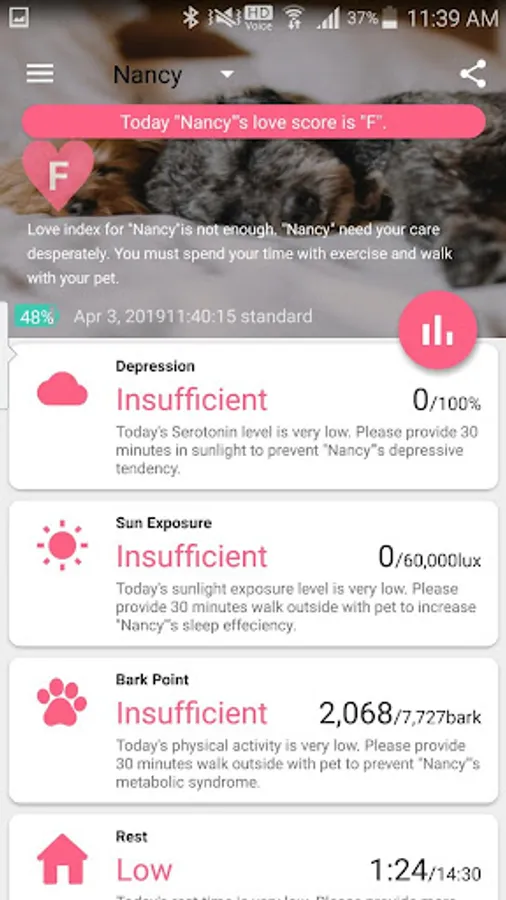 5. Set standard health promotion goals for each breed / weight / sex / month of pets. (Exercise, walking, rest, sunlight, ultraviolet exposure, light pollution exposure, vitamin D)