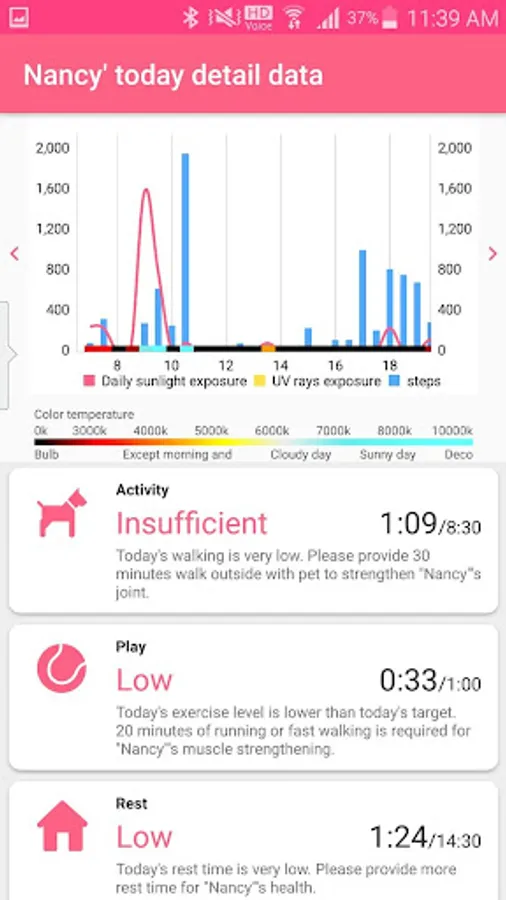2. Manage the Vitality Index, Vitamin D Level, Ultraviolet Level, Daylight Exposure Level of Pets.
