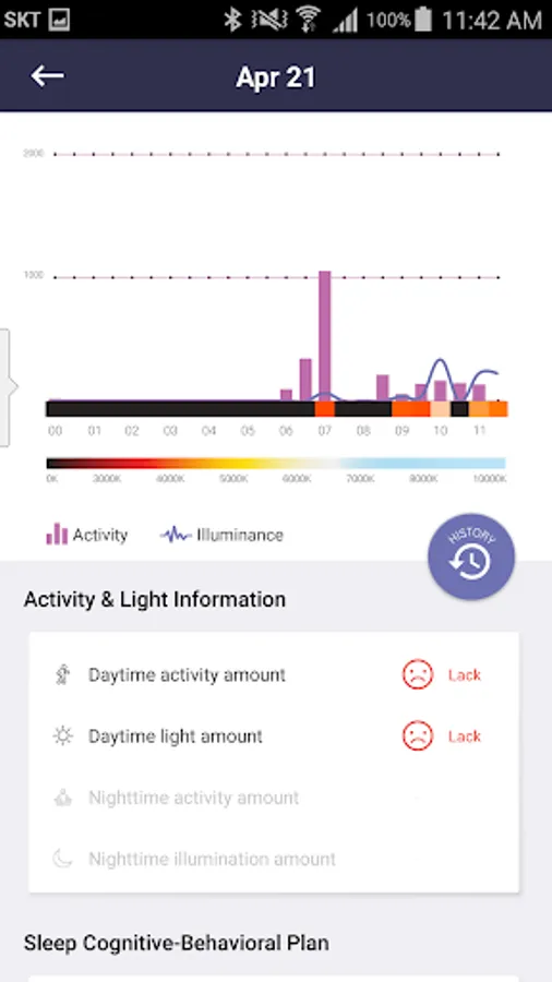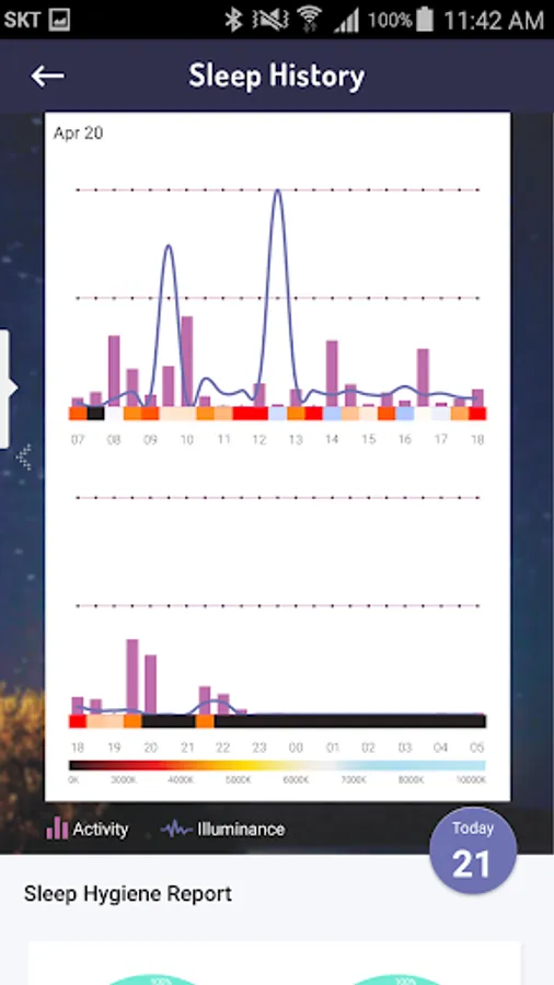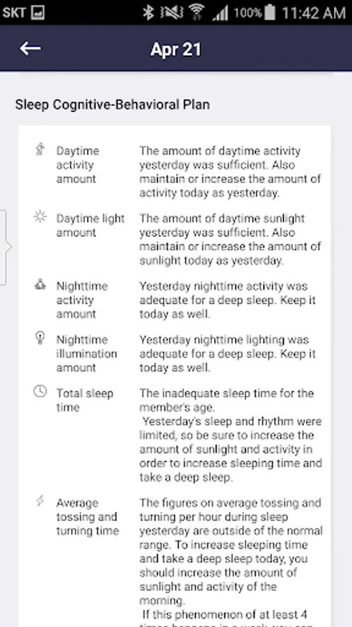 -The product analyzes illumination, activity, and light temperature of day and night, and sleep tracking information, provides a sleep cognitive activity plan and an advice for better quality sleep.
