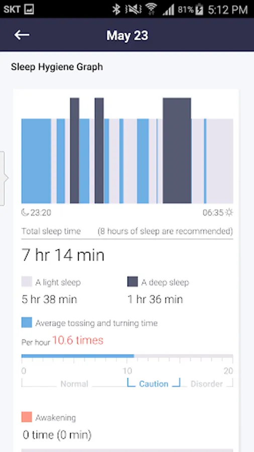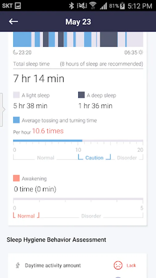 1. Based on previous night’s data, analyze sleep abnormalities or disruption.