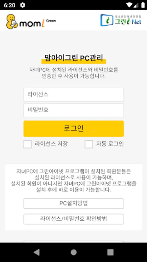1) Install Mom Eye Green on the website of Green Inet (http://www.greeninet.or.kr/) (free)