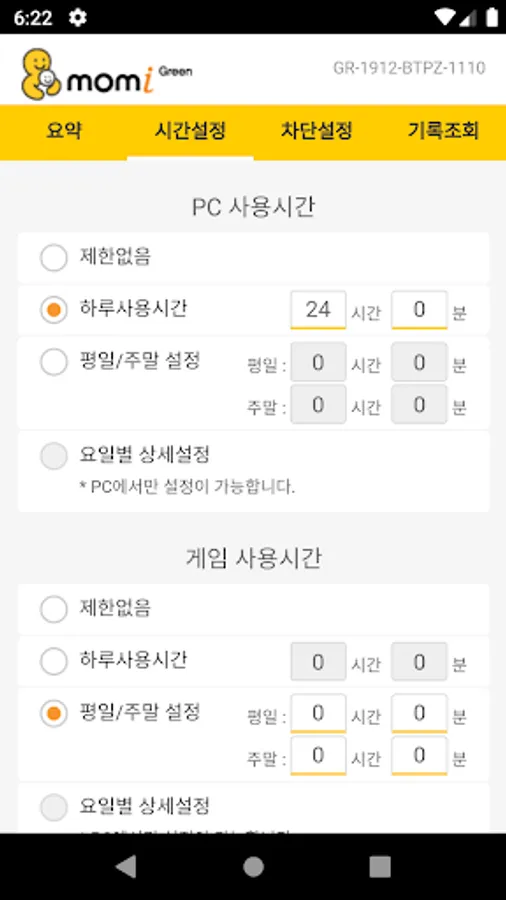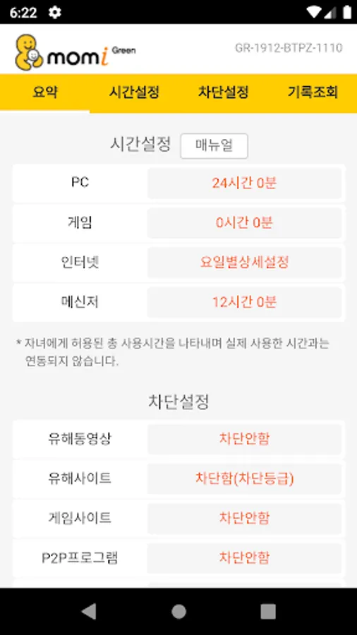 1) Mom Eye Green PC management login > Child PC control and management settings > Child PC application