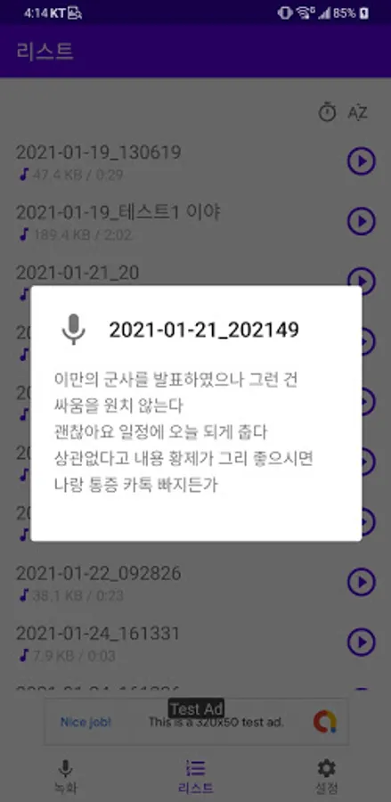Continuous input is possible, and the recorded voice is saved as MP3 in the internal storage, and a text file recording the converted voice is also saved.