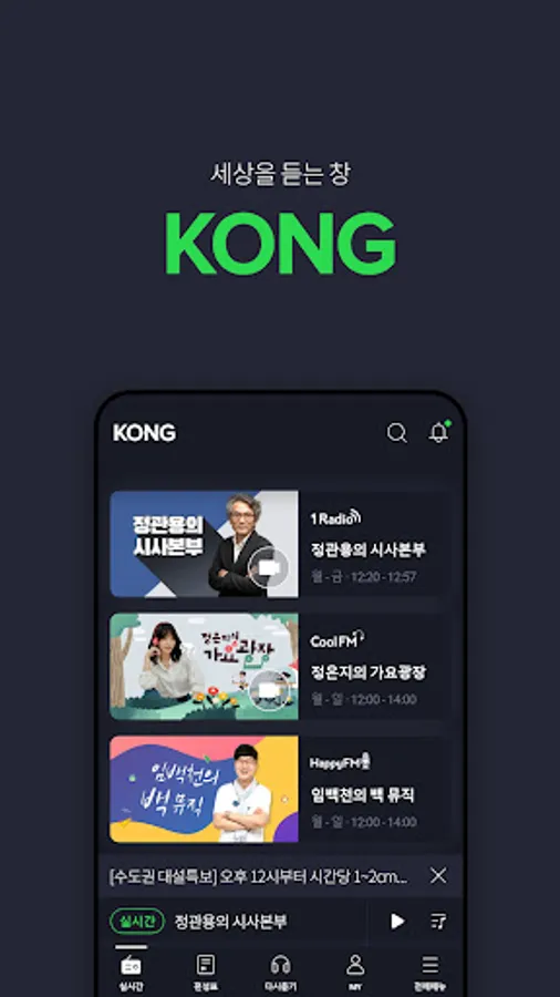 * KBS radio KONG will always do our best to meet the audience's needs with better service and various contents. Thank you.