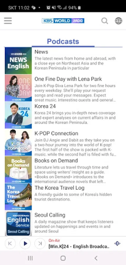 - On-air streaming, VOD, Podcasts for KBS WORLD’s content
