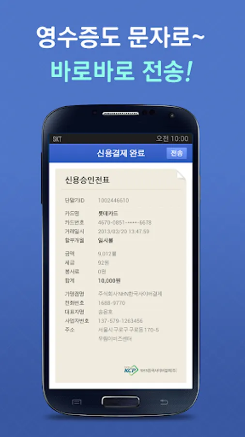 3. KCP check mobile via the IC card reader enables billing and payment information, you can send a receipt via text message and email to customers.