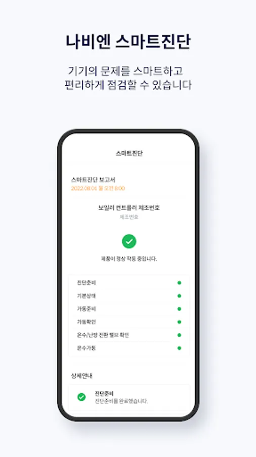 - When a problem occurs, leave it to the app first. We will help with diagnosis with AI boiler before application. (Smart Diagnosis)