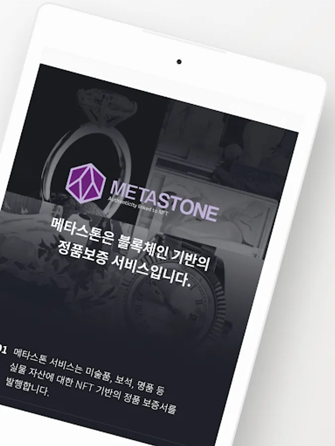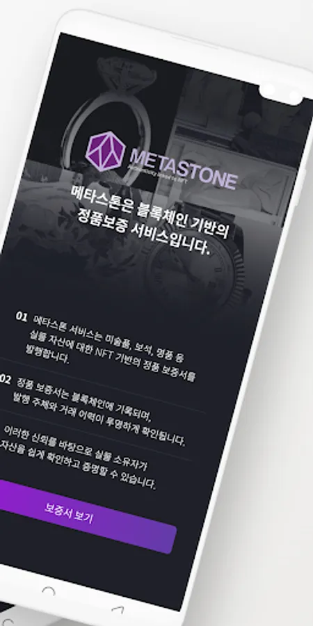 When the user touches the Metastone card on the back of the smartphone, the genuine warranty of the real asset can be easily checked on the Metastone app.
