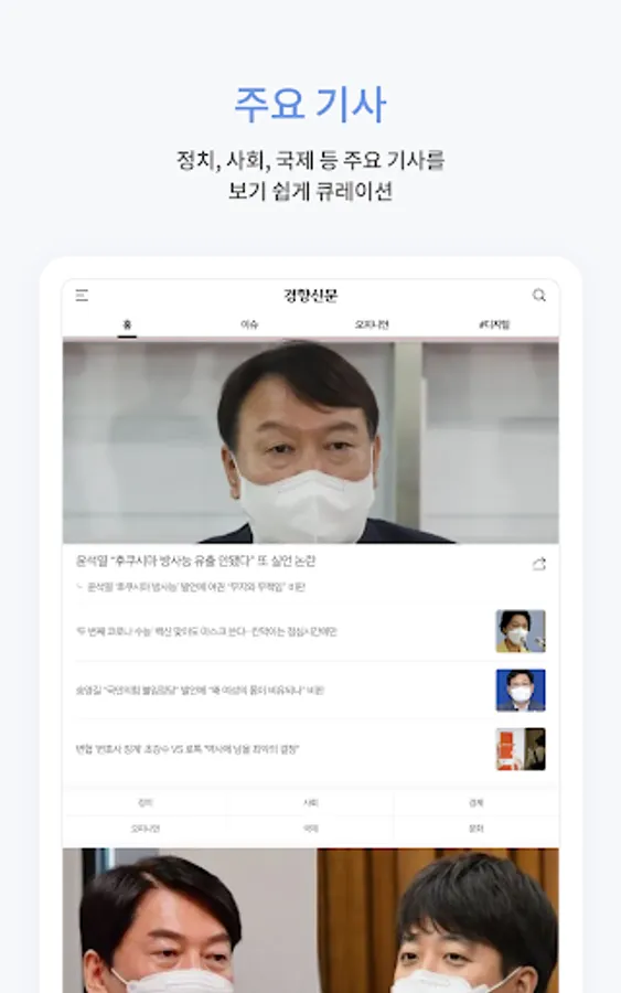 - Provides news curation that easily organizes major news, breaking news, and today's issues.