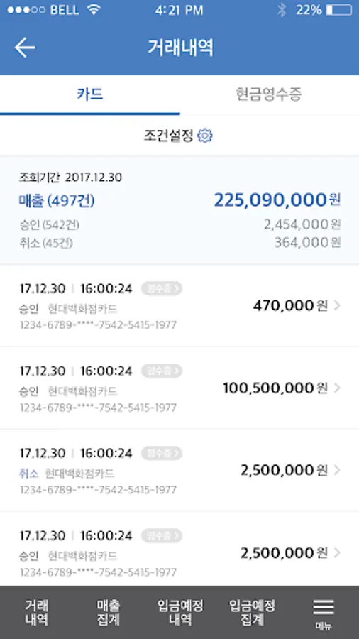매입, 입금예정내역을 조회해 볼 수 있는 매출관리 모바일 서비스입니다.