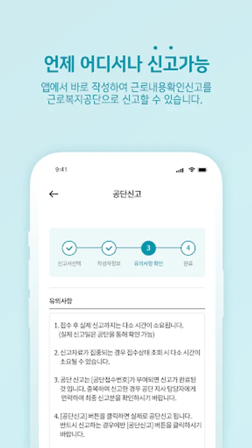 2) Instead of entering manually and sending it through mail or fax, you can fill it out directly in the app and report it to the Korea Labor Welfare Corporation.