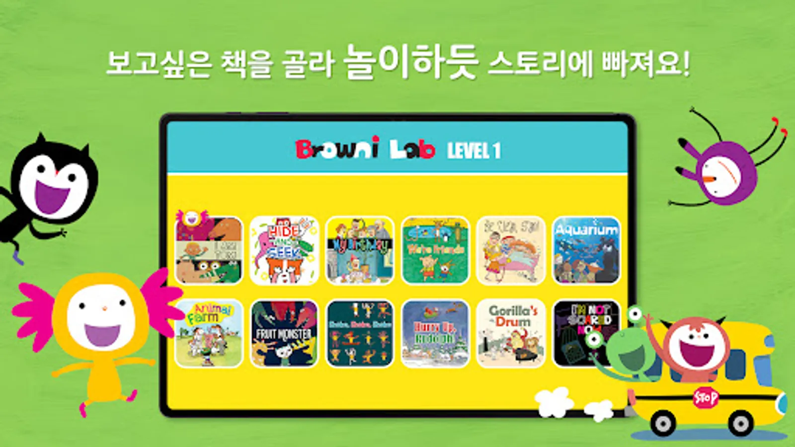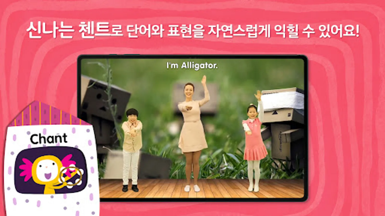 Through 12 stories, songs, and chant videos, children can easily become familiar with English and, based on the background knowledge they have already acquired, increase their immersion naturally while playing games and experience learning as a fun game.