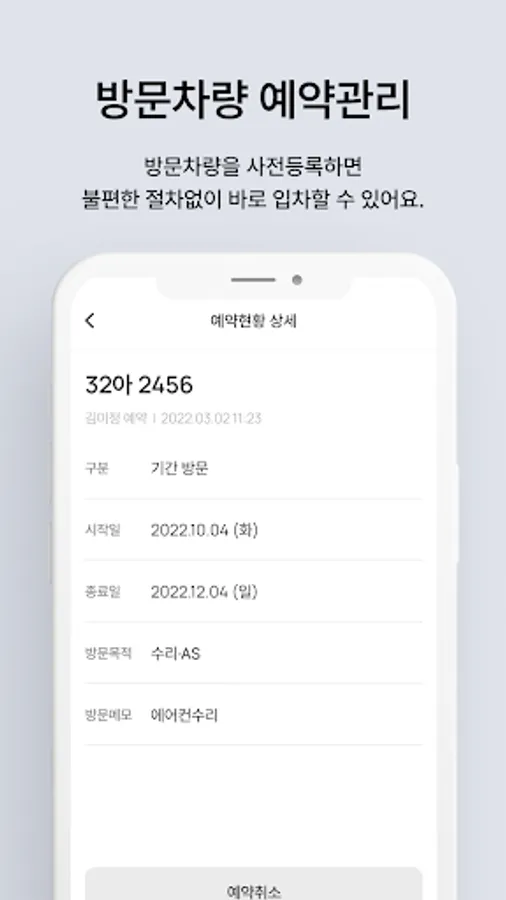- Visit vehicle reservation (1 day visit/period visit) and visit status check available