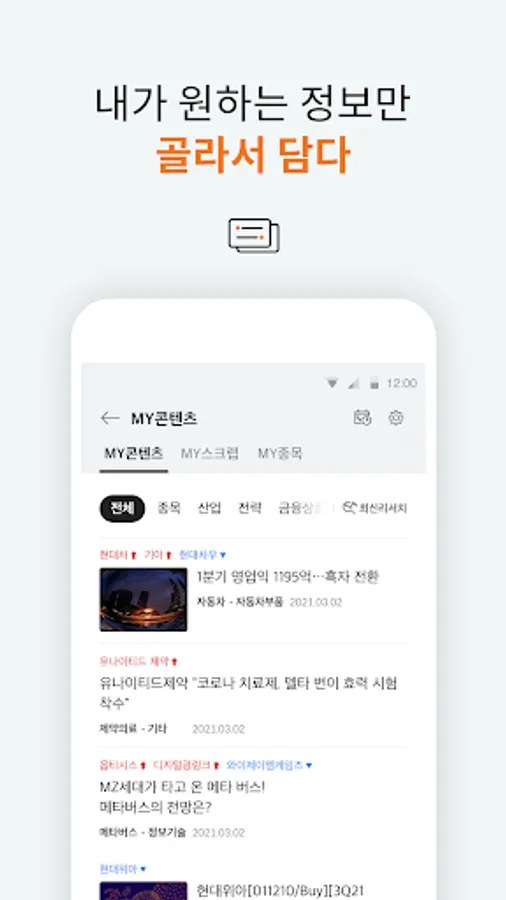 - Investment information: Research center, news, etc. market conditions are segmented and provided by theme