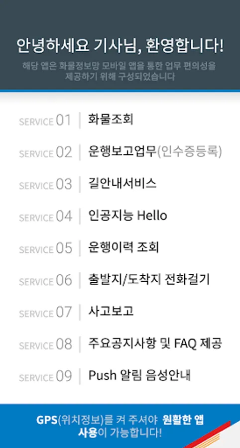 CJ Korea Express Freight Information Network Daewoo Application has been released with Hello.
