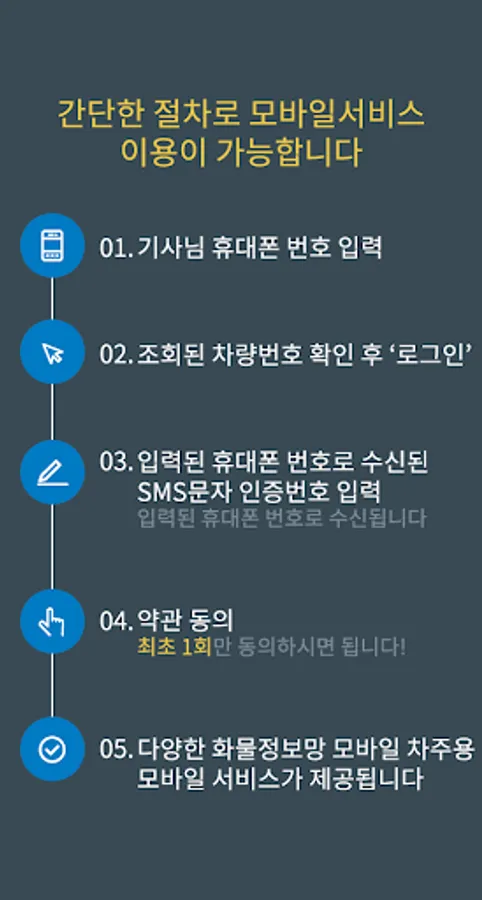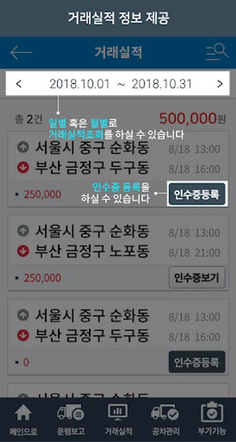 It is an application that can search and dispatch more conveniently and quickly in real time. Receive matching cargo through region / car / tonnage, and provide optimized functions considering borrower members.