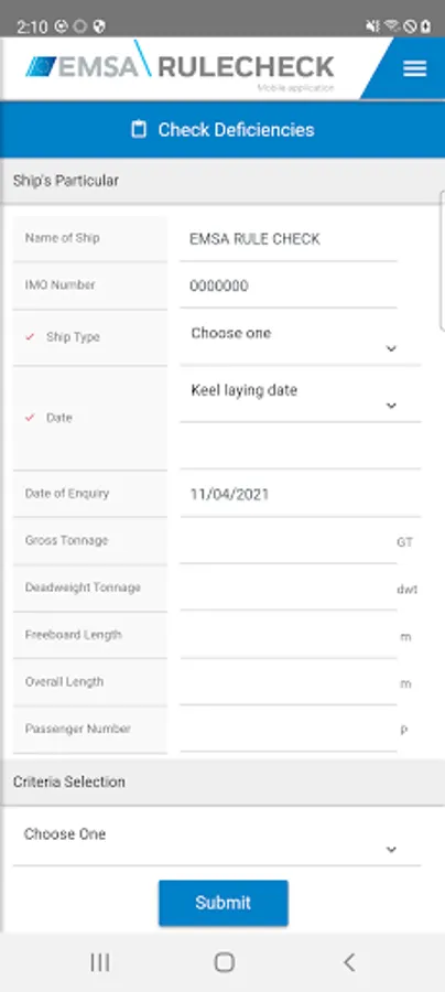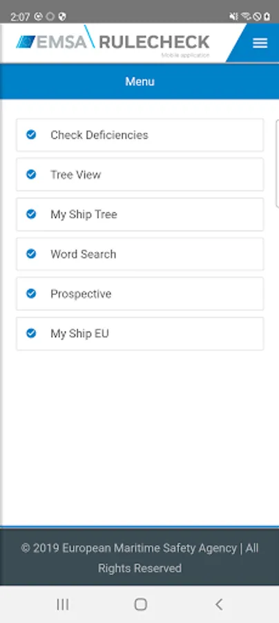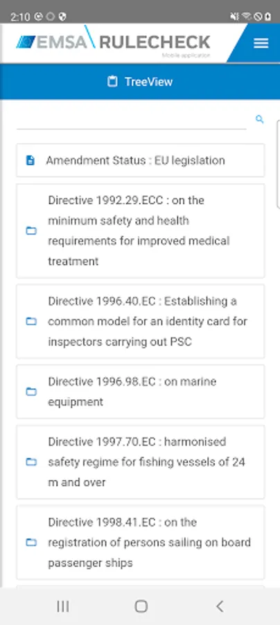 The content of the RuleCheck mobile application is the same with the version that users can access through EMSA’s portal and includes the following functionalities: