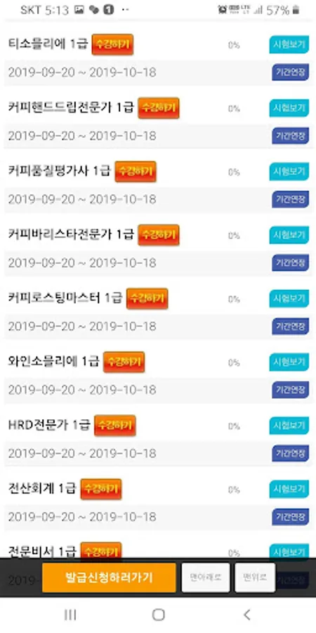 심리상담사,도형심리상담사,문학심리상담사,독서심리상담사,인지행동심리상담사,애니어그램심리상담사,푸드아트심리상담사,장애인인식개선지도사,퍼스널컬러컨설턴트,플로리스트전문가,캘리그라피지도사,SNS마케팅전문가,영어요리지도사,정리수납전문가,쇼핑몰관리사,리더십지도사,가정관리사,예절교육지도사,커피바리스타전문가,커피핸드드립전문가,커피로스팅마스터,커피품질평가사,와인소믈리에,티소믈리에,3D프린팅지도사,6시그마(GB),기업생산관리자,코딩교육지도사,품질검사마스터,스포츠심리상담사,가족심리상담사,색채심리상담사,놀이심리상담사,노인미술심리상담사,노인음악심리상담사,노인심리상담사,청소년미술심리상담사,아동미술심리상담사,아동학대예방상담사,학교폭력예방상담사,다문화심리상담사,부부심리상담사,미술심리상담사,음악심리상담사,원예심리상담사,아동심리상담사,부모교육상담사,분노조절상담사,심리분석사,4대보험관리사,콜센터전문상담사,감정노동관리사,이미지메이킹지도사,프리젠테이션전문가,개인정보관리사,인사총무관리자,스피치지도사,골프전문캐디,결혼상담사,운동처방사,CS강사,창업상권분석지도사,하브루타지도사,책놀이지도사,아동청소년스피치지도사,방과후영어교육지도사,방과후돌봄교실지도사,스토리텔링수학지도사,창의과학교육지도사,색종이접기지도사,레크리에이션지도자,방과후학교지도사,마술교육지도사,자원봉사지도사,영재놀이지도사,보드게임지도사,영어독서지도사,클레이아트,스토리텔링그림책지도사,자기주도학습지도사,진로적성상담사,공부습관지도사,독서토론지도사,공부방지도사,독서지도사,진로직업상담사,독서논술지도사,항공서비스전문가,DCS,CRS,아동요리지도사,놀이교육지도사,아동교육지도사,동화구연지도사,아동독서지도사,아동미술지도사,손유희지도사,아동복지상담사,특수아동지도사,아동발달전문지도사,병원원무행정사,보험심사평가사,실버병원코디네이터,병원진료접수매니저,병원서비스매니저,병원행정관리사,병원코디네이터,요양병원관리사,노인두뇌훈련지도사,실버레크레이션지도자,실버건강지도사,노후설계지도사,노인교육지도사,학교보안안전지도사,안전교육지도사,재난안전지도사,한국어지도사,한국사지도사,인문학지도사,한자지도사,정보보안전문가,해킹보안전문가,소프트웨어교육지도사,스마트IT컴퓨터지도사,컴퓨터OA마스터,빅데이터전문가,네트워크전문가,컴퓨터사무정보처리사,부동산권리분석사,빌딩관리사,부동산분양상담전문가,부동산자산관리전문가,반려동물관리사,반려동물장례지도사,반려동물행동교정사,HRD전문가,전문비서,스마트폰활용지도사,전산회계