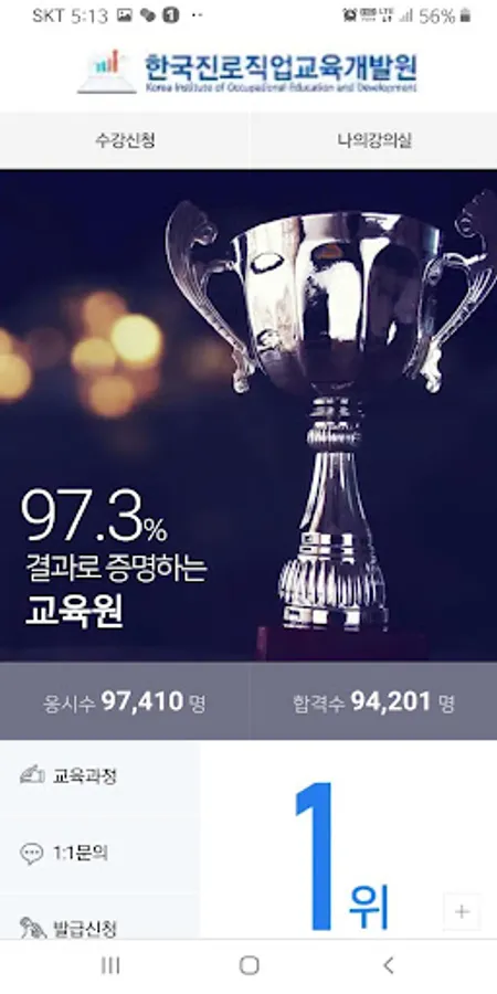 한국직업능력개발원 정식등록 1급 자격증 139개 과정이 개설