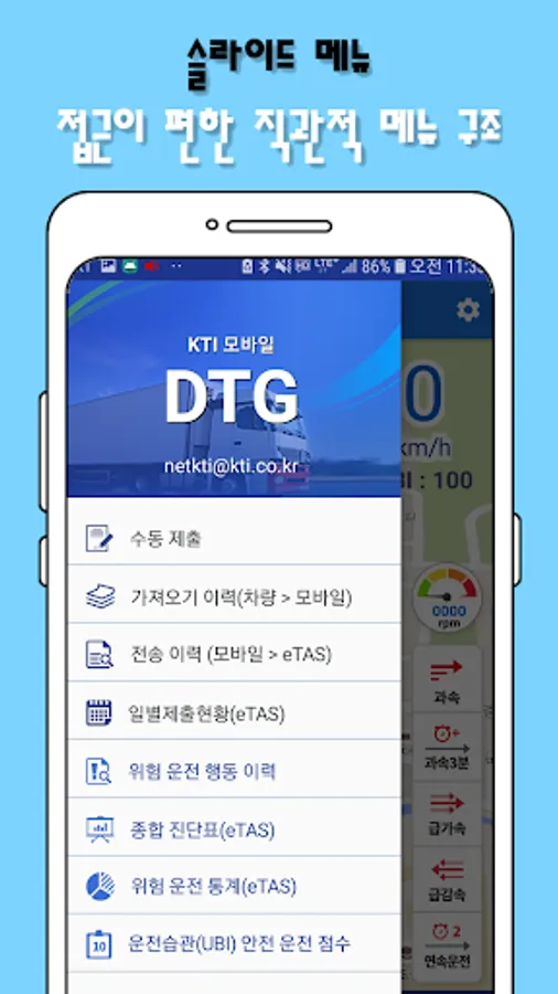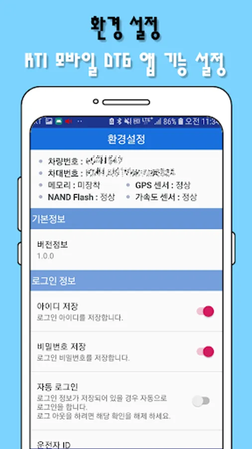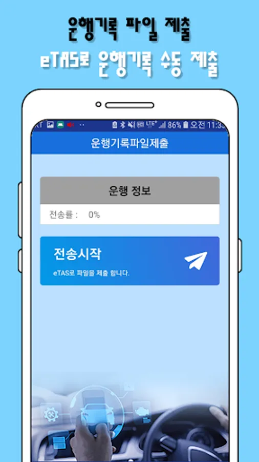 It is an application that automatically submits the driving record received through Bluetooth from the terminal mounted on the vehicle to the driving record analysis system (eTAS) by logging in with the log-in account (driver account) of the Transportation Safety Authority driving record analysis system (eTAS).