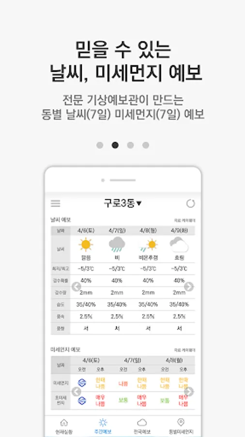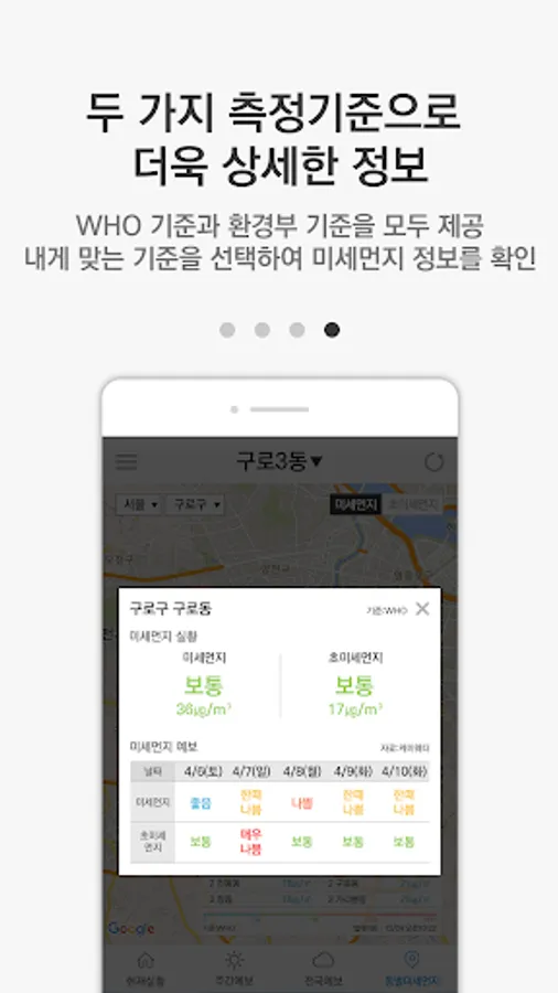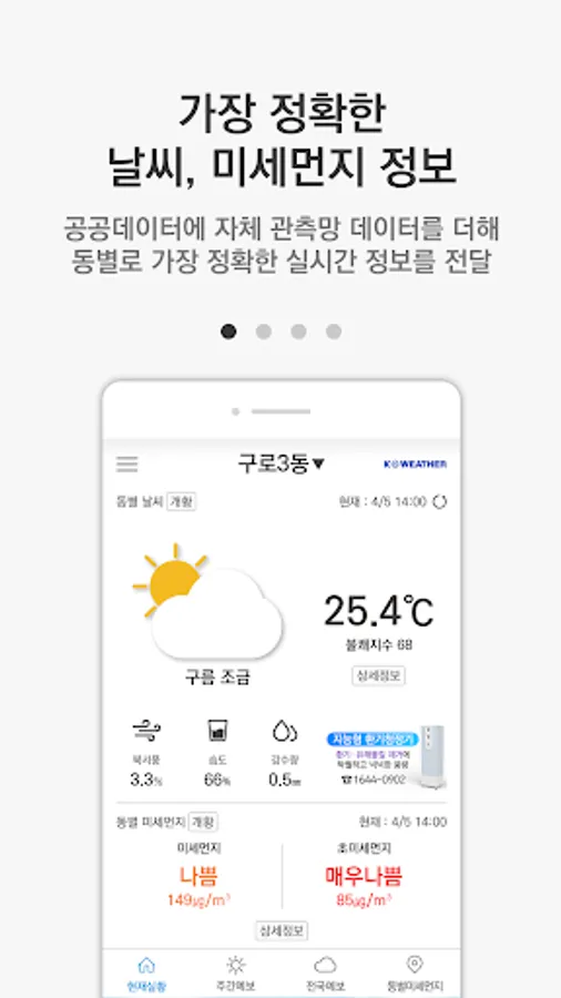 From now on, check the different weather and fine dust information for each dong in real time!!!