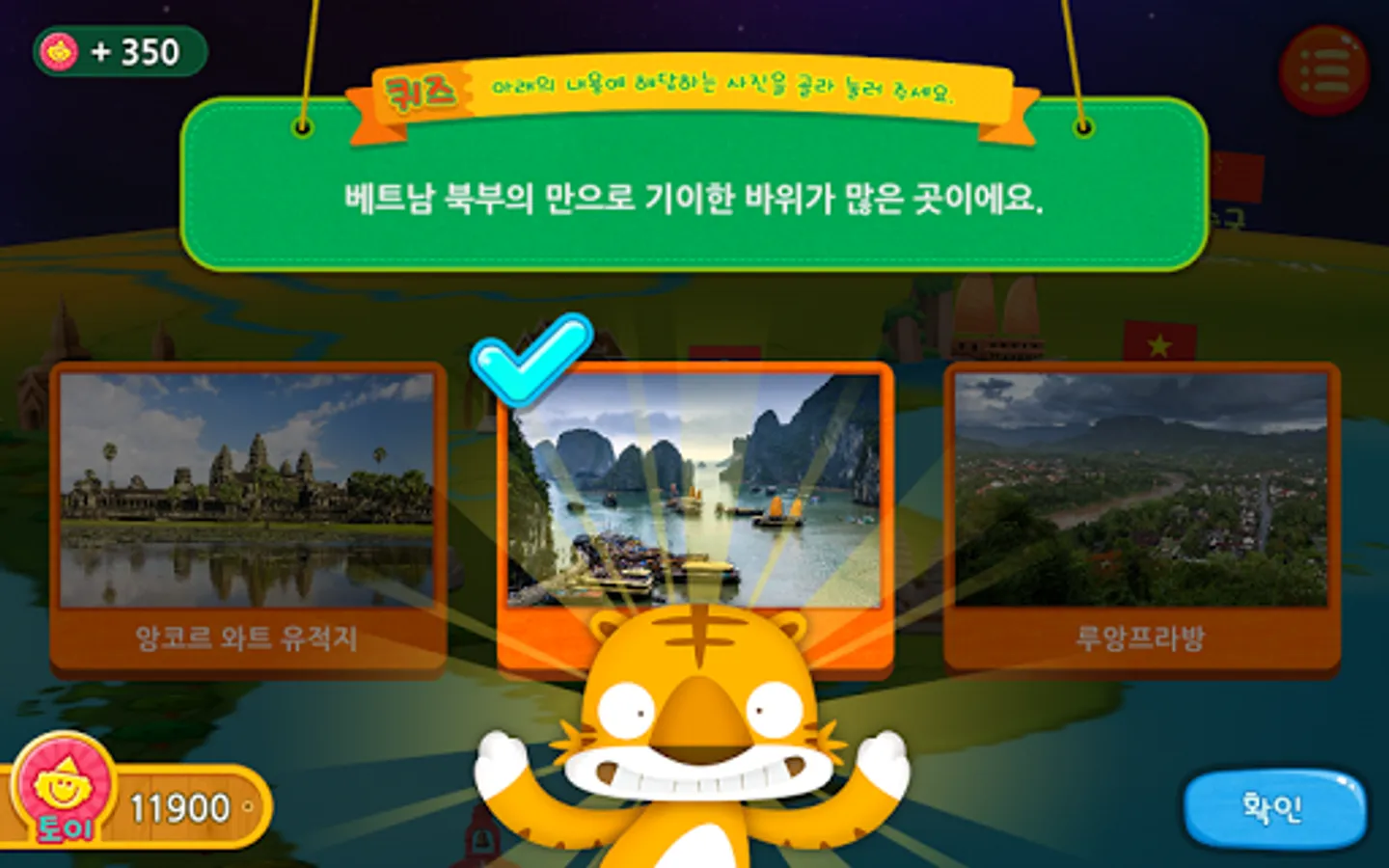When you get the correct answer to the quiz, you can get a toy to travel around the world.