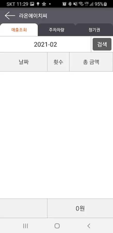 If you use the parking control system installed by Raon HC, you can view sales by date through mobile, and search for parking vehicles and manage commuter passes.