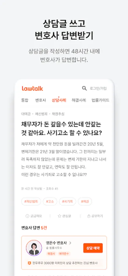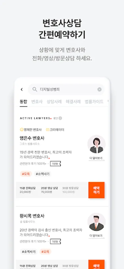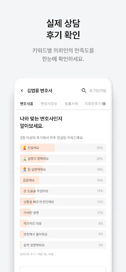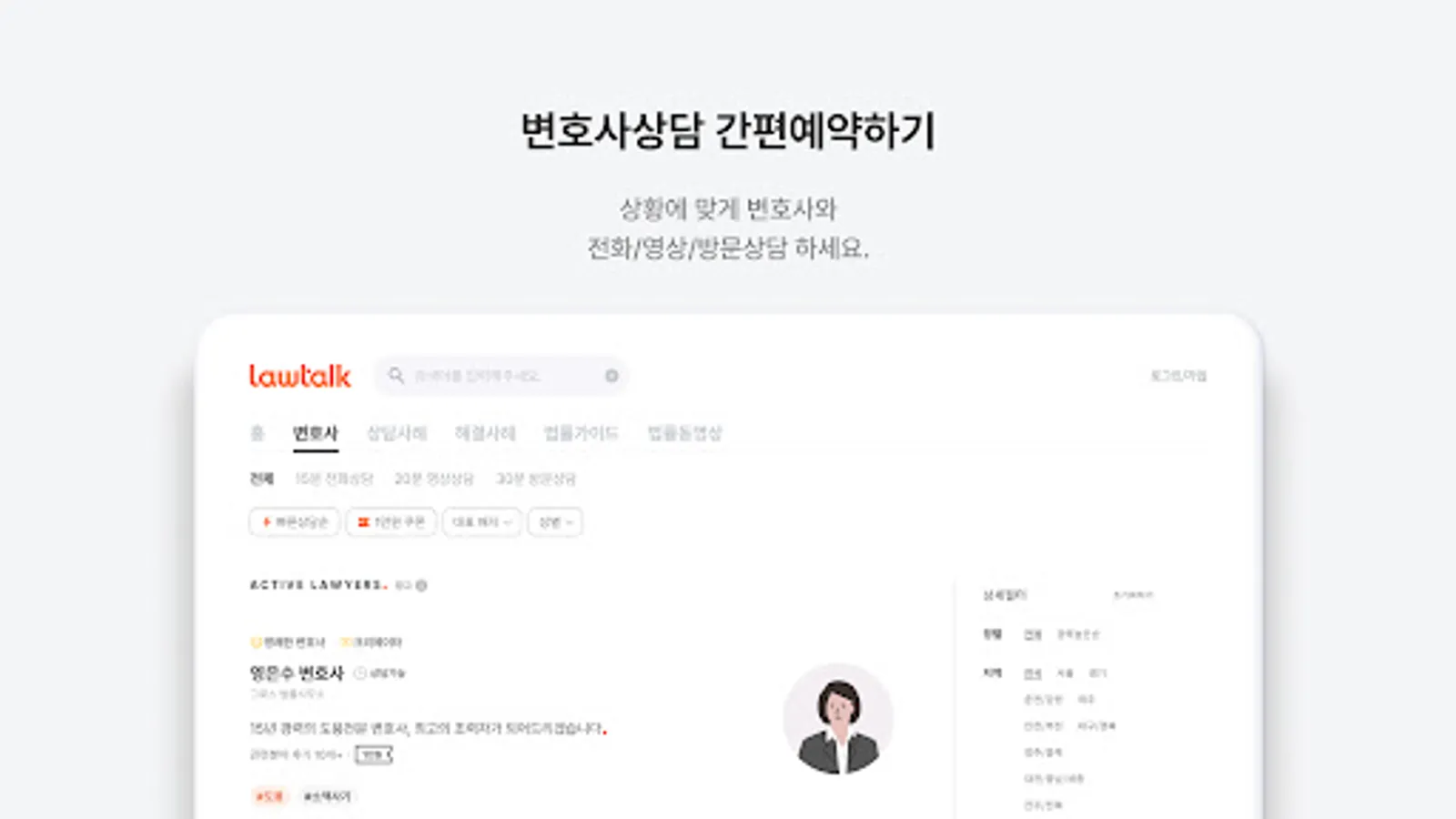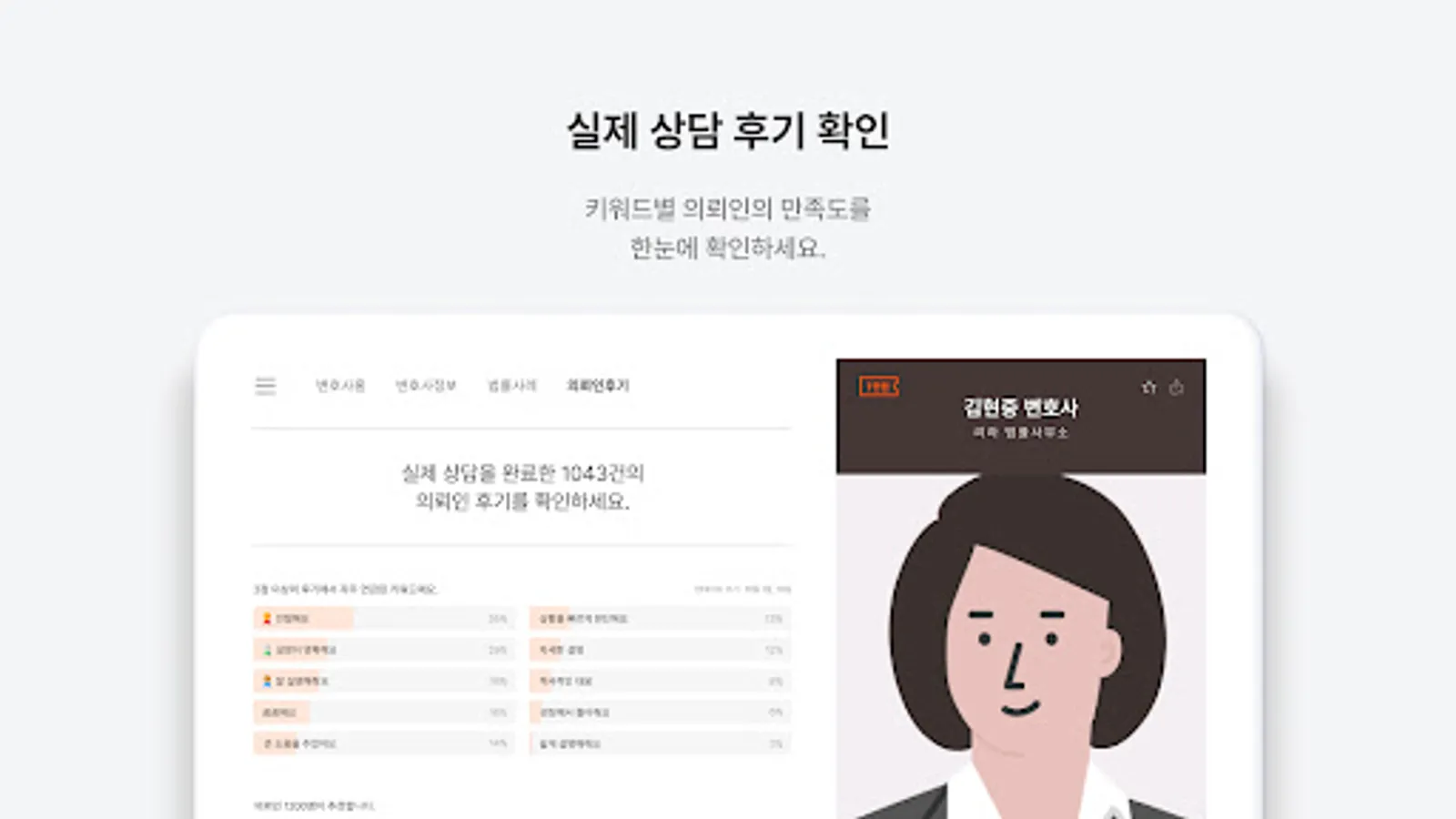 - You can check the lawyer's career, hard-to-understand fees, and actual counseling reviews.