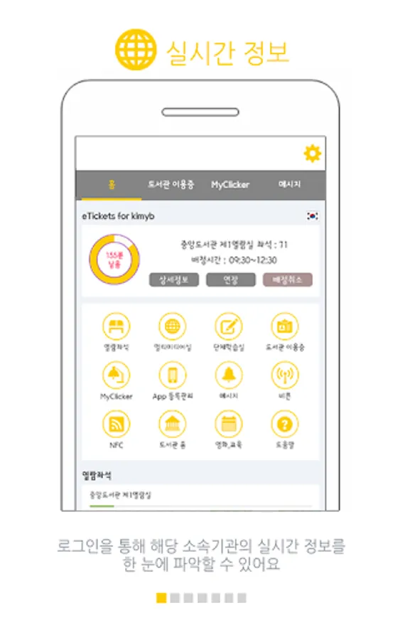 Clicker is a system (Smart Library Management System) for managing the entire facility of the electronic library. It provides facilities such as reading seats, study rooms, multimedia rooms, and lockers through the same interface using all devices such as kiosks, PCs, tablets, and smart phones. It is a system that connects.