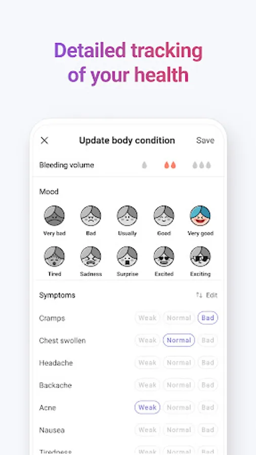 It's easy to let your health slip with your busy day-to-day life. No more worries. With Bom Calendar, you can learn about the symptoms and causes of common illnesses for women and how to respond to them.