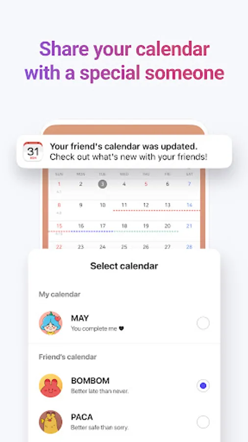 Accurate period tracking starts here. Add and manage your schedule and to-do-list with just one tap. Get notifications to keep up with your schedule, lunar calendar, and holidays. Save time and make your day more efficient with Bom Calendar.