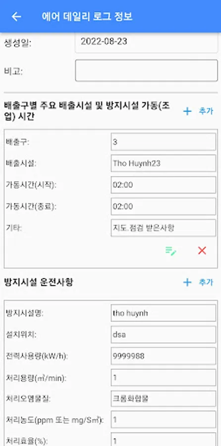App Name: 대기, 폐수 일지관리(자동기록 작성앱)