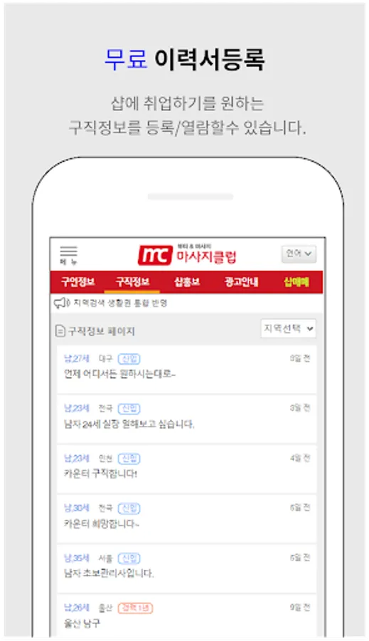 ▶You can easily find jobs and talents around you by searching for job openings by region.