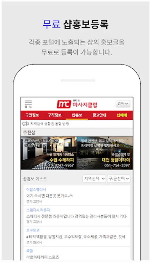 The massage club app has been released, a portal site specializing in the massage industry.