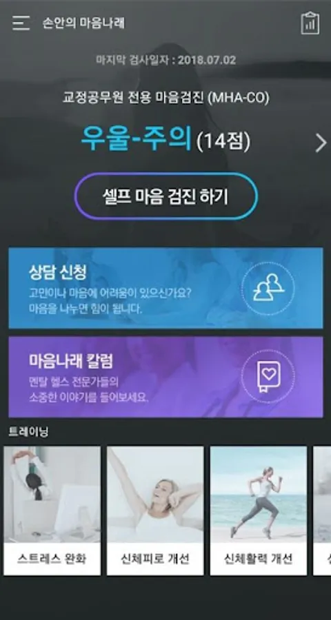 ⊙ corrected the headquarters mind Narae visiting the physical and mental care can be confirmed by the history of the autonomic nervous system and brain health through inspection