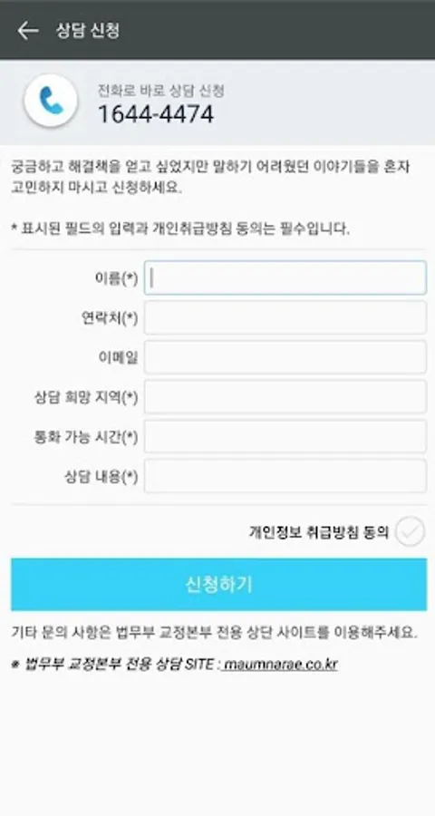 ⊙ correction officials consult the site: http://maumnarae.co.kr
