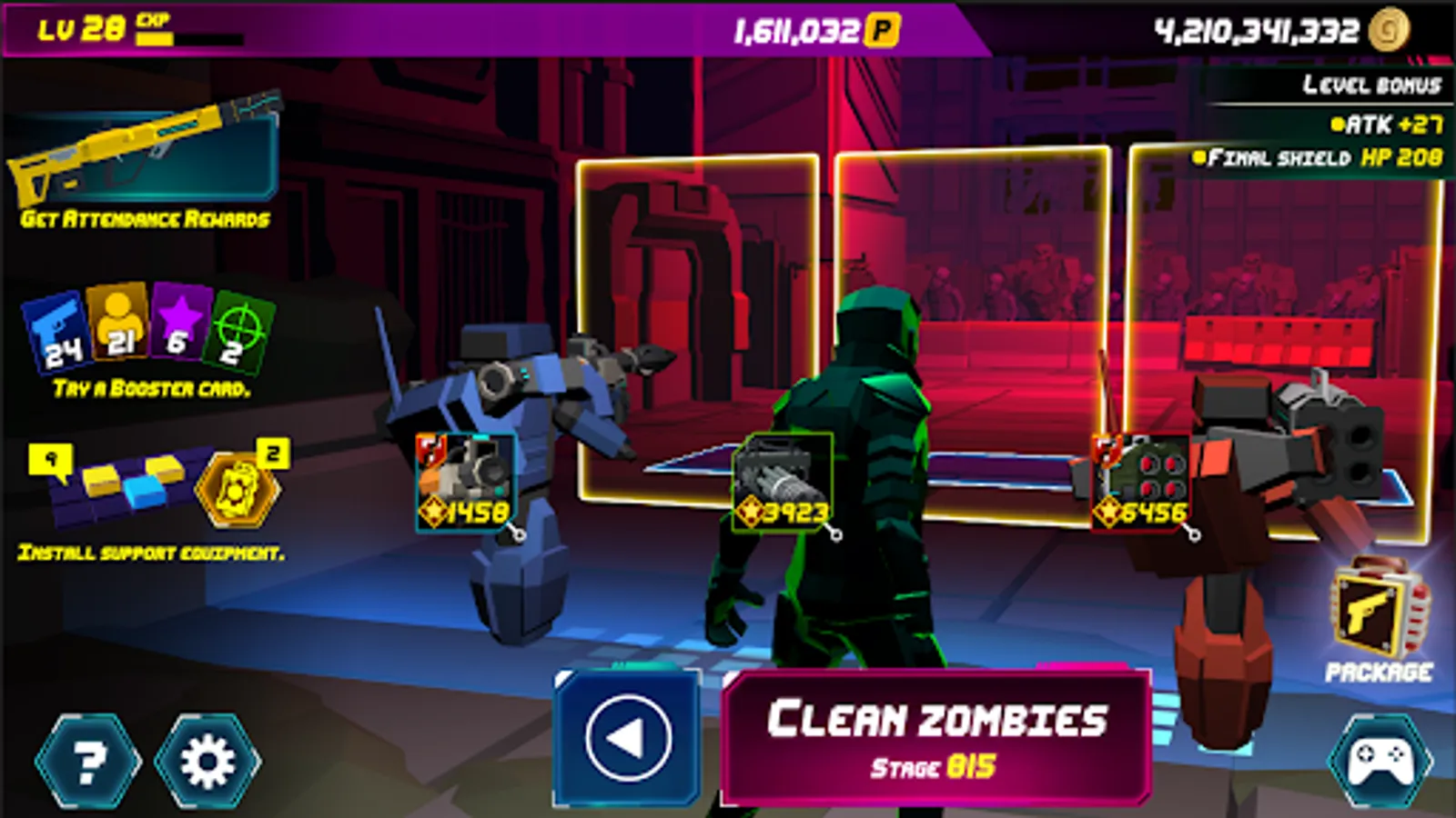 Utilize the firearm fortifying card and fellow robots given during the battle to become the hero of the city.