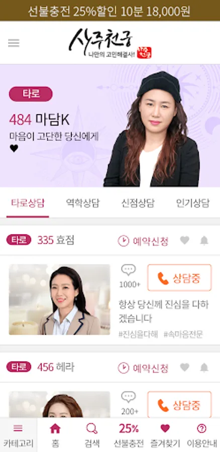 - When you click the teacher consultation button in the app, you can directly connect with the teacher without pressing the teacher selection button in ARS and consult fortune telling.