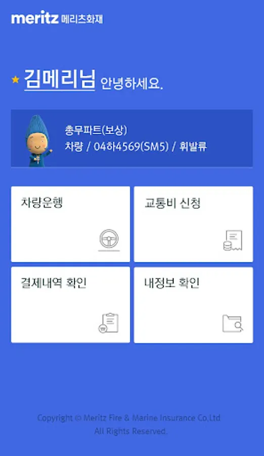 Meritz Fire & Marine provides information on items necessary for service use and requests access rights in accordance with the Information and Communications Network Act.